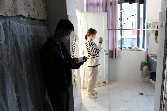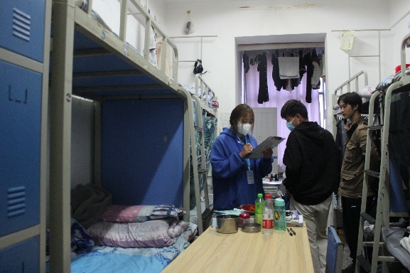 下午17时,学院团总支学生会权益服务部的同学们来到各个宿舍检查卫生,此次检查合格的宿舍各成员将给予“到梦空间”1个积分奖励。