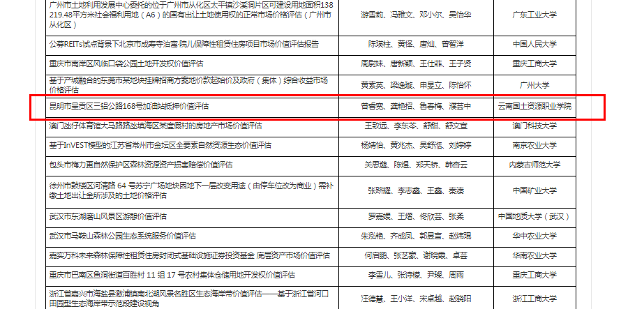 近日,新葡官网薛荣莉、邓传青两位老师带队指导的学生在“第六届全国土地资源管理专业大学生不动产估价技能大赛”中取得佳绩,顺利入围决赛。在大赛组委会公布的入围名单中,有四川大学、广州大学、湖南大学等众多本科院校,专科院校仅有云南国土资源职业学院,且有两组作品成功入围决赛。