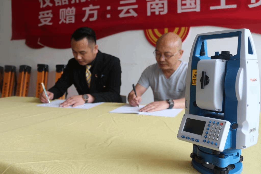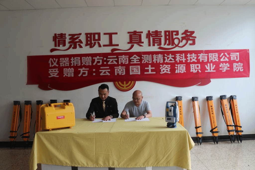 最后,张洪院长与赵财全董事长分别代表校企双方签订校企合作捐赠协议并进行了全站仪、脚架的交接。