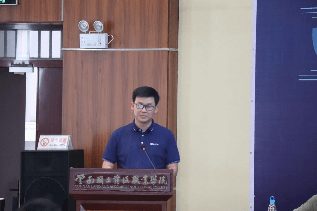 广州南方测绘科技股份有限公司副总经理郭宝宇致辞,他表示,技能竞赛是高校实现创新教育的重要载体,本次技能大赛为学生提供了展示自我、追求梦想的舞台,南方测绘将一如既往地支持测绘教育,致力于测绘地理信息教育的智能化。