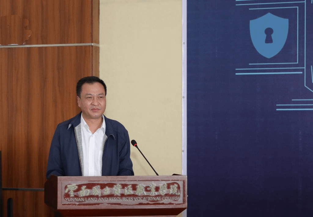 接着,云南国土资源职业学院党委书记牛定柱致辞,他代表学校对各单位、各指导老师和参赛选手的到来表示热烈欢迎,对向大赛筹备工作提供支持和帮助的领导、嘉宾表示衷心感谢。他表示职业扬起人生风帆、技能成就精彩人生,希望参赛选手充分发挥聪明才智、沉着认真对待每一项赛程,发扬“量天测地绘我河山”的精神,赛出风格、赛出水平,争做新时代的追梦人、圆梦人。