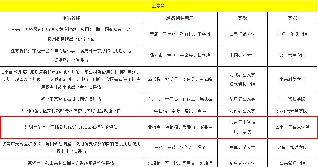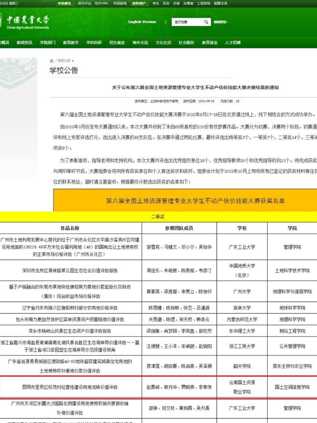 近日,由中华人民共和国教育部公共管理类教学指导委员会、全国高校土地资源管理院长联席会主办,中国农业大学和中国土地估价师与土地登记代理人协会承办的第六届全国土地资源管理专业大学生不动产估价技能大赛决赛落下帷幕,新葡8883官网AMG官网邓传青、薛荣莉两位老师带队指导学生荣获佳绩。