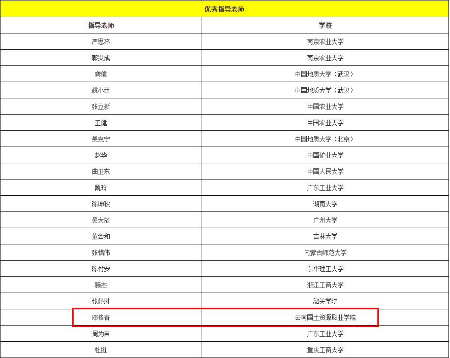 新葡官网邓传青老师带领的学生团队荣获二等奖,薛荣莉老师带领的学生团队荣获三等奖,邓传青老师荣获优秀指导老师奖,新葡8883官网AMG官网荣获优秀组织单位奖。此次比赛我校是唯一一所获奖的高职院校,彰显了我校进入“双高”建设以来,尤其是国土资源调查与管理专业群在“双高”建设中致力于以专业群建设为龙头,打造高素质教师队伍同时,积极主动探索高素质应用型人才适用于市场需要的培养途径。