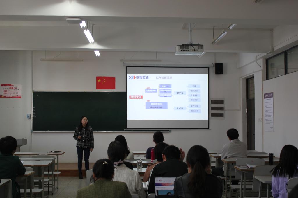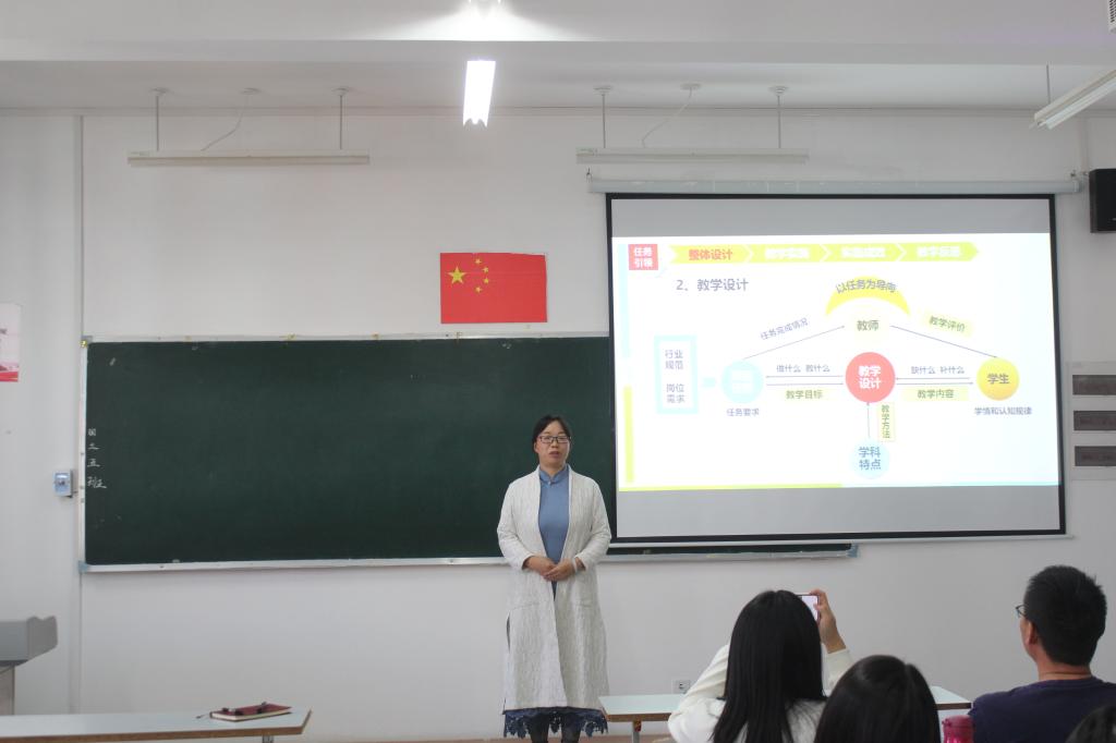 本次比赛共分为说课和提问两个环节。参赛老师各个胸有成竹、沉着应战,相继登上讲台进行说课。教师们从教材、学生、教学方法及教学理念、教学过程等方面入手,全面阐述说课内容。教师们的说课设计结构合理,重点突出,理论依据充分,展现了各自的教学特色。各评委老师也分别对参赛老师的表现进行了点评,并提出了改进的意见。