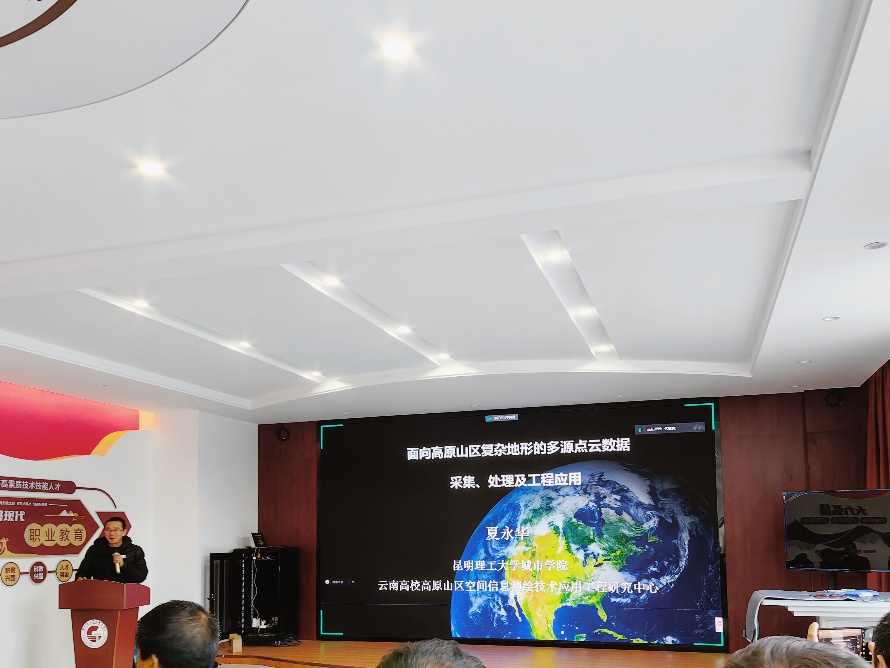 中国科学院空天信息创新研究院研究员沈占锋,云金地科技企业集团董事长赵俊三,昆明理工大学城市学院地球科学技术系主任夏永华三位专家学者分别做了专题讲座,并和与会老师就云南国土空间信息产业的最新技术、发展趋势、人才培养等方面进行了深入的探讨和交流。