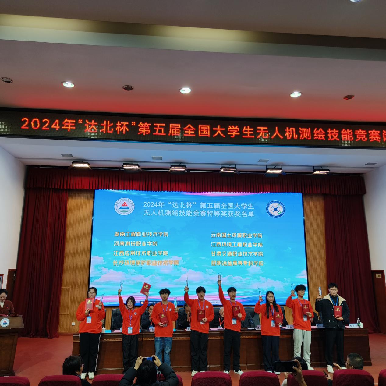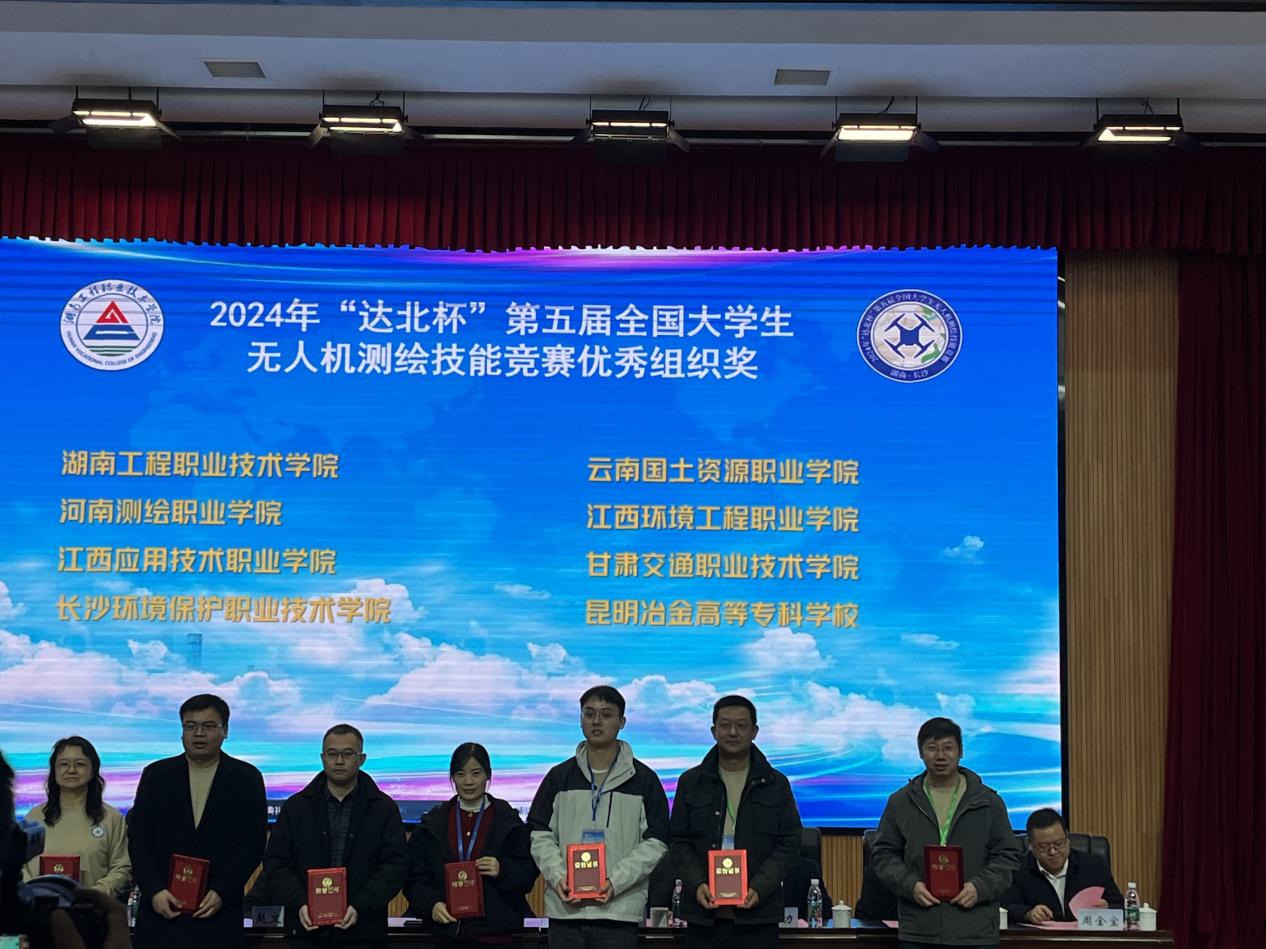 11月22—25日,“达北杯”第五届全国大学生无人机测绘技能竞赛在湖南工程职业技术学院举行,此次大赛由自然资源部人力资源开发中心、全国测绘地理信息职业教育教学指导委员会主办。大赛主要由来自华东交通大学、西北师范大学、河南理工大学、长安大学、东华理工大学等全国21个省、自治区、直辖市的76所院校,共76支队伍参赛。新葡8883官网AMG官网2022级摄影测量与遥感专业学生沈丽、农华玫组成的参赛队由沈金祥副院长带队,在冯耀明和孙晓莉两位老师的指导下,经过激烈角逐,凭借扎实的无人机测绘实践操作能力,斩获大赛“特等奖”,冯耀明和孙晓莉两位老师荣获竞赛“优秀指导教师奖”,云南国土资源职业学院荣获“优秀组织奖”。