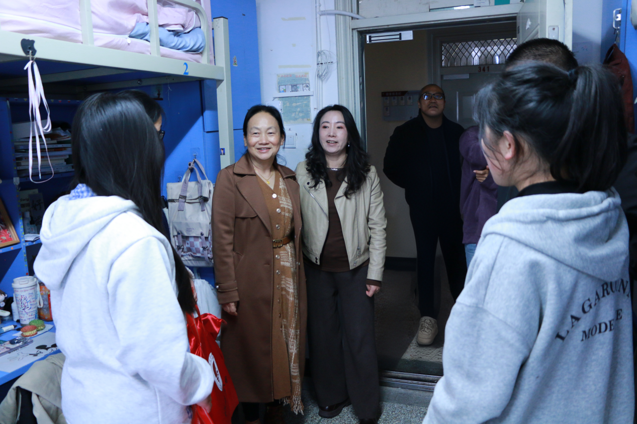 学校校长陈颖、学院党委书记苏丽丹、党委副书记和万荣及25级辅导员一行,深入“一站式”学生社区——绘水苑3栋学生宿舍走访慰问。老师们亲手将包装规整的毛毯递至受助学生手中,关切询问大家的日常起居与课程学习情况,细致了解学生的生活状态,并给予温暖的反馈,“希望这份温暖能成为你们冬日奋进的力量。”一句句叮嘱,承载着师长的深情厚谊。受助学子们脸上洋溢着幸福的笑容,纷纷向老师们表达真挚的谢意,并表示将更加努力学习,将这份温暖与关爱传递下去。
