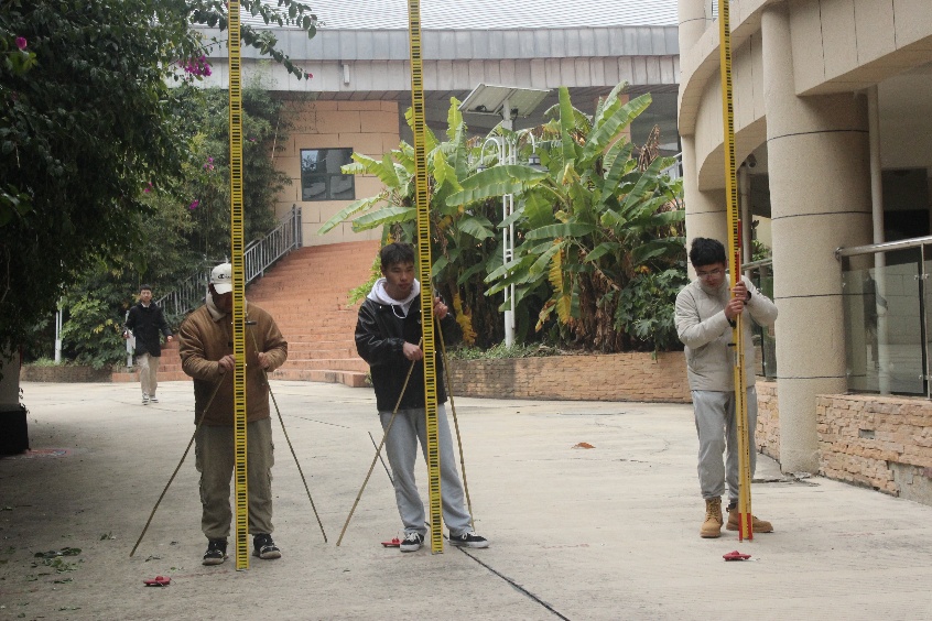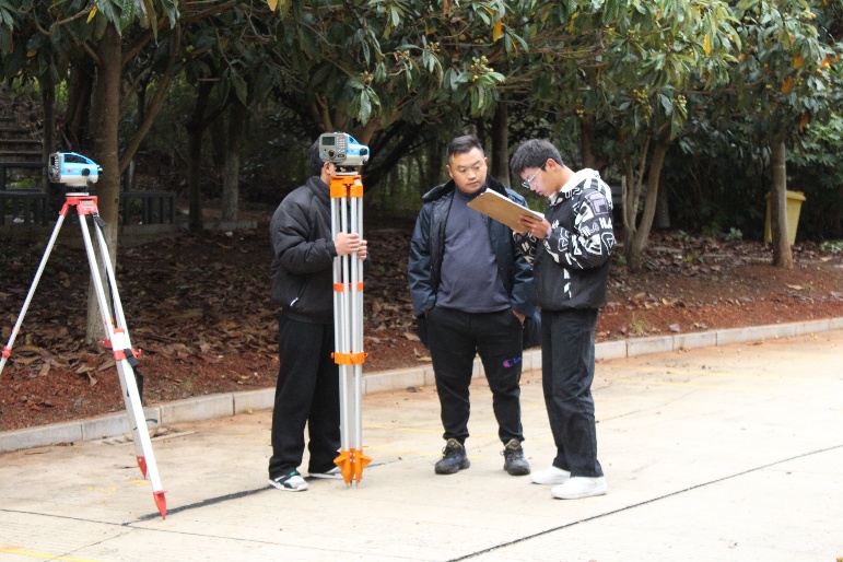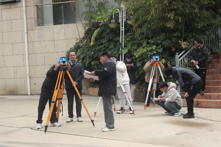 天气寒冷,但挡不住同学们的参赛热情,大家全神贯注投入竞赛,熟练操作测量仪器,快速准确获取相关数据,认真编绘地形图,充分展示了自身扎实和专业知识和技能,体现了国土学子求真务实、精益求精的风采。在场的老师们始终坚守岗位,及时解决竞赛中出现的问题,确保竞赛顺利进行。