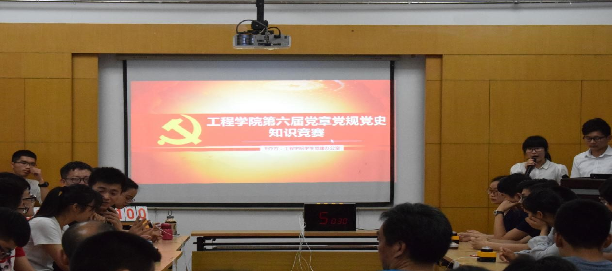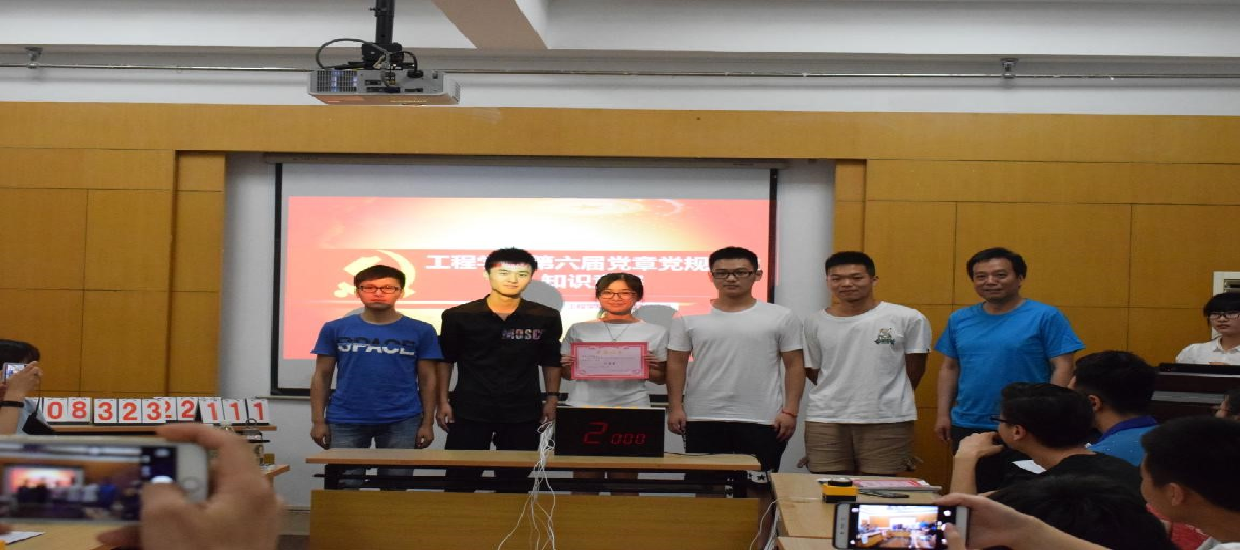 (通讯员:文新)2017年5月14日晚7点,永利集团官网第六届党章党规党史知识竞赛决赛在工程楼315报告厅举行,院党委书记陈飞,院党委副书记江广长,辅导员文新、王俊以及6支决赛队伍参加了比赛。