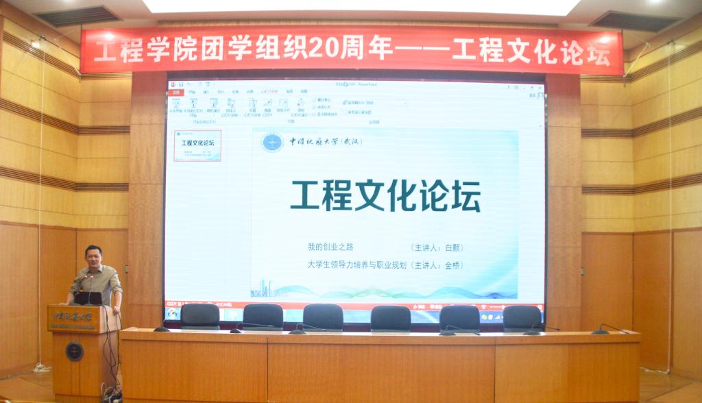 在工程文化论坛上,永利集团官网第二届团委副书记、武汉市洪山区水务局局长金桥,永利集团官网第六届学生会副主席、北京金景科技有限公司董事长白颢分别作了题为《我的创业历程》、《大学生管理能力提升与职业规划》的主题报告。
