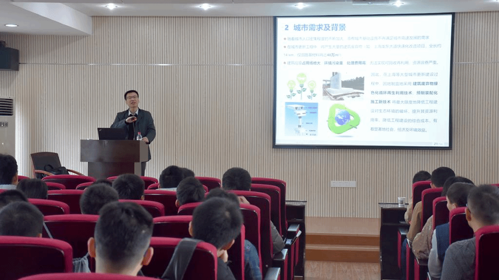 报告围绕“城市更新中绿色施工技术探索与实践”展开,介绍了上海建工集团工程研究总院在复杂的城市环境中绿色施工技术的探索和工程实践经验,分别从“高架桥梁预制拼装技术”、“地下结构预制拼装技术”和“渣土再生利用技术”三个方面介绍了绿色施工技术中的关键技术问题和积累的工程经验。报告结束后,吴小建所长热情回答了参会师生的提问,他衷心希望永利集团官网师生在城市绿色施工技术上取得更大的突破,为解决我国城市施工中的环境难题做出贡献。
