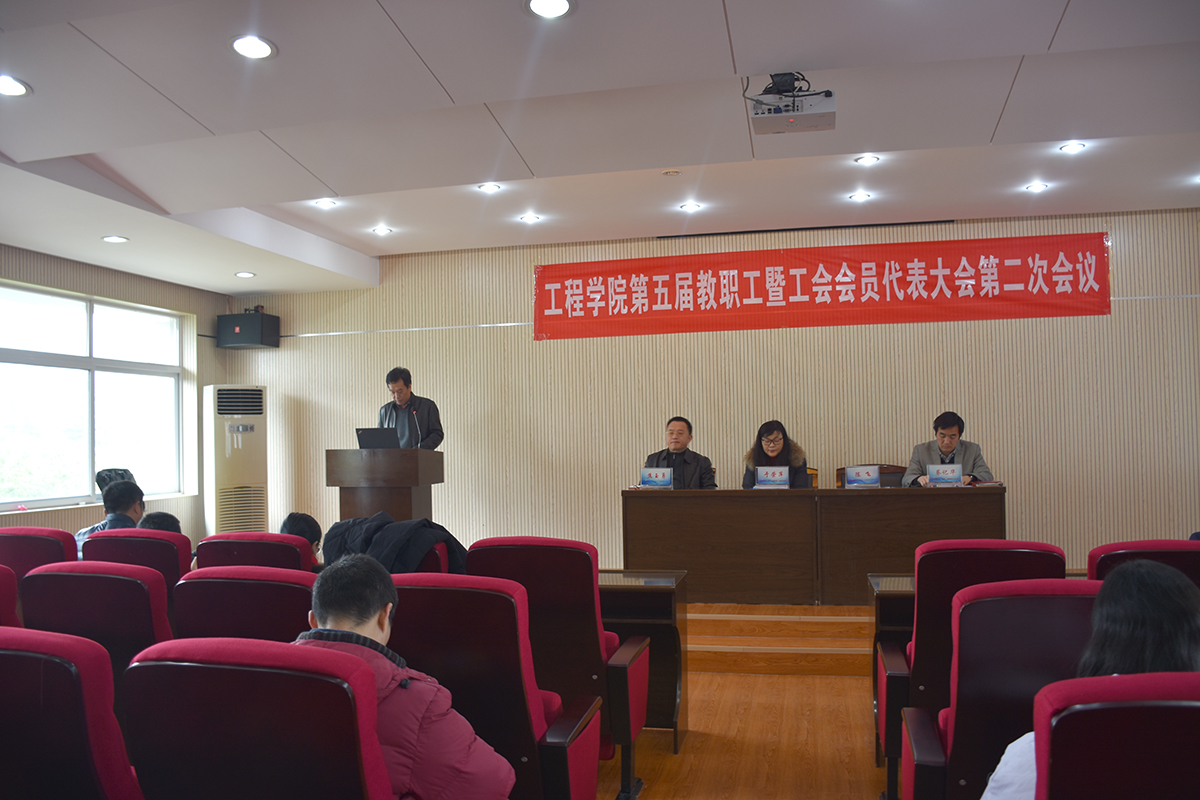 2019年1月4日上午,永利集团官网在工程楼418学术报告厅召开了第五届教代会暨第五届工代会第二次会议,校工会常务副主席于荣萍及学院第五届教代会与工代会代表与会。会议由院党委副书记江广长主持。