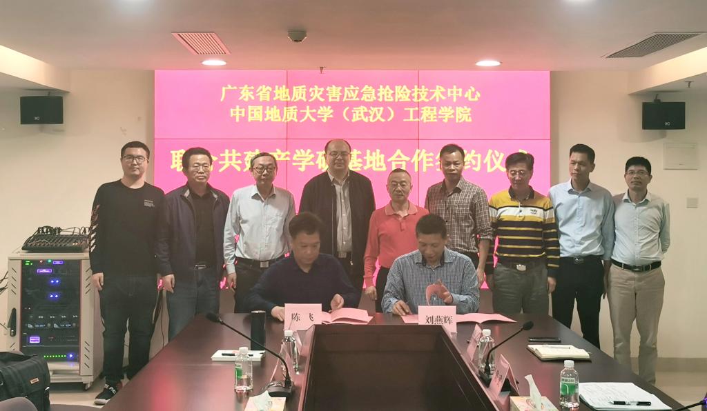 陈飞、刘燕辉签署产学研基地合作协议。根据协议,广东省地质灾害应急抢险技术中心作为永利集团官网(武汉)永利集团官网的产学研基地,双方将定期就人才的培训、技术的创新、引进与推广、联合攻关、学生实习等方面开展协商研究。
