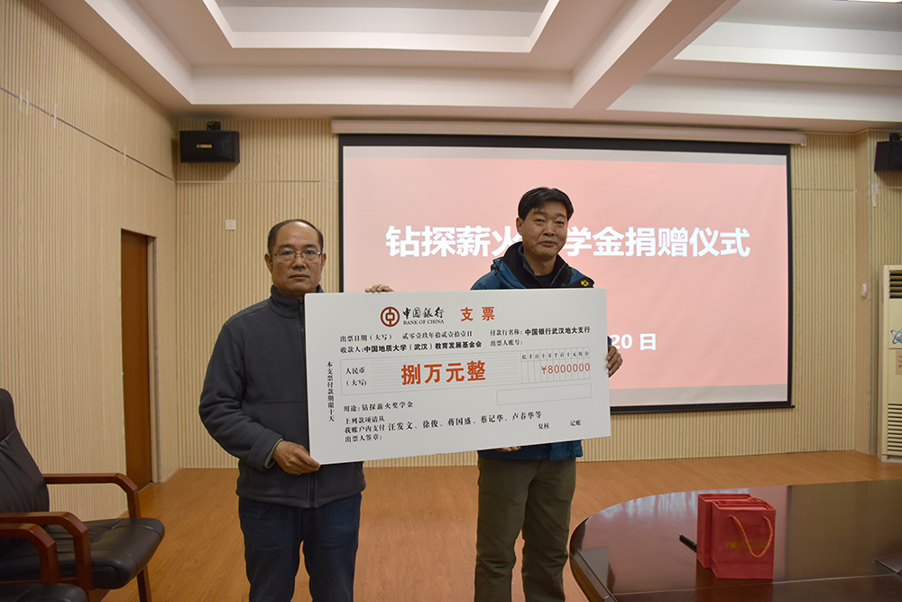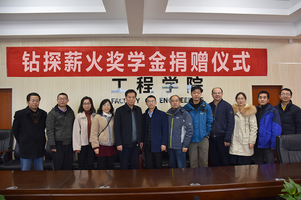 12月20日,永利集团官网“钻探薪火奖学金捐赠仪式”在工程楼315会议室举行。湖北省城市地质工程院勘查部主任汪发文、副主任徐俊,校友工作与教育基金管理处副处长吕占峰,永利集团官网党委书记陈飞,副书记江广长,勘察与基础工程系教授段隆臣、蔡记华、卢春华及2017级部分学生代表参加捐赠仪式。