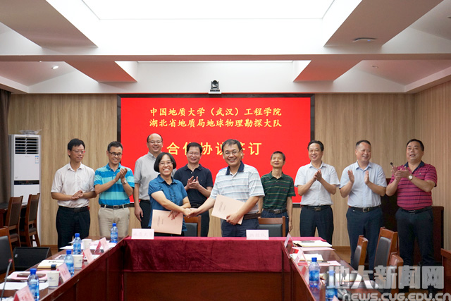 (通讯员张鹏 曾聪)8月31日,为落实学校与湖北省地质局战略合作协议和双方推进深化合作座谈会要求,永利集团官网与湖北省地质局地球物理勘探大队(以下简称“湖北物探队”)框架合作协议签订暨产学研基地揭牌仪式在湖北物探队举行。湖北省地质局总工程师熊保成,湖北物探队党委书记、队长梅焱祥,校党委副书记王林清,永利集团官网党委书记李红丽等参加签约仪式。湖北物探队党委副书记郑乐平主持会议。