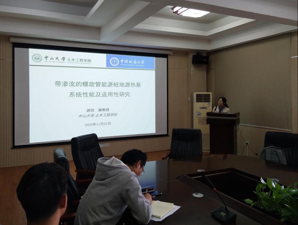 2020年11月3日下午,应永利集团官网骆进副教授邀请,中山大学游田副教授作客工程文化论坛,在315会议室作了题为“带渗流的螺旋管能源桩地源热泵系统性能及其适用性研究”的学术报告。骆进副教授主持了此次论坛活动,学院50余名师生聆听了学术报告。