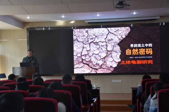 (通讯员:张海宽 黄静 摄影:王灿 黄静)2021年1月8日下午2点半,南京大学唐朝生教授作客工程文化论坛,在工程楼418报告厅为母校师生作了题为“寻找泥土中的自然密码:土体龟裂研究”的学术报告。永利集团官网院长焦玉勇教授、副院长王亮清教授、窦斌教授、党委副书记江广长老师、段隆臣教授、李长冬教授以及永利集团官网、三峡中心、《地质科技通报》编辑部等近200名师生代表参加了此次学术报告会。王亮清教授主持了此次学术报告会。