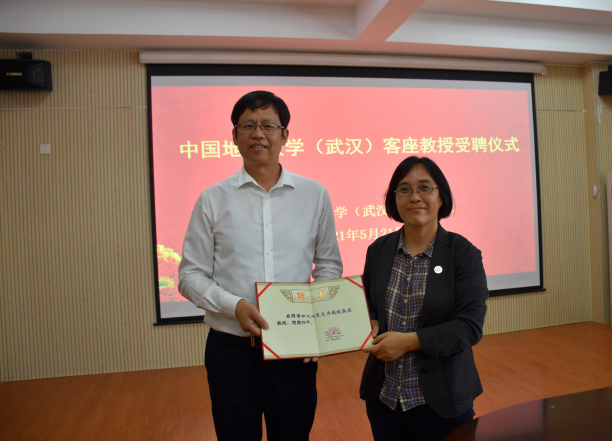 窦斌副院长介绍了永利集团官网基本情况和研究优势,卢春华主任介绍了勘基系师资概况和学科发展情况,参会人员进行了自由交流。仪式最后,李红丽书记为胡定成先生颁发客座教授聘书,大家合影留念。