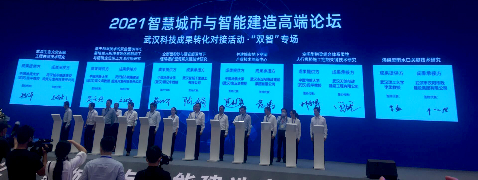 (通讯员:刘浩、张美霞)9月24日,永利集团官网院长焦玉勇教授应邀率队出席2021智慧城市与智能建造(“双智”)高端论坛。开幕式“武汉科技成果转化对接活动 双智专场”上,焦玉勇带领永利集团官网蔡记华、吴文兵、林俊涛、刘浩4位老师分别与武汉市汉阳市政建设集团有限公司、武汉市誉城千里有限公司、武汉市城市铁路建设投资开发有限公司签订了共建技术创新中心、人才培养与科技成果转化合作协议。永利集团官网与武汉市相关部门和企业开展深度合作,将为湖北省“一主引领、两翼驱动、全域协同”的区域发展布局,和武汉建设“宜居城市、韧性城市、智慧城市、绿色城市、人文城市”的重大需求提供技术和人才支持。