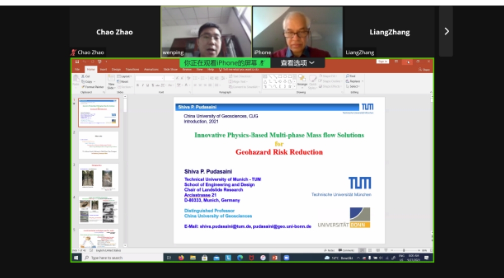 (通讯员:邢磊 赵超)2021年9月27日下午,应“重大地质灾害预测与预防学科”111创新引智基地唐辉明教授和龚文平教授邀请,德国慕尼黑工业大学Shiva P. Pudasaini教授通过Zoom meeting平台为我校师生作线上学术报告。永利集团官网龚文平教授主持报告会,40余名师生在线聆听了此次报告。