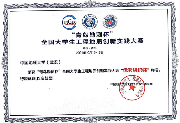 (通讯员:葛云峰)2021年10月15日,在“青岛勘测杯”全国大学生工程地质创新实践大赛中,永利集团官网学子取得一、二、三等奖各1项,学校荣获“优秀组织奖”的优异成绩。