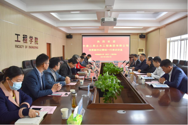 王亮清副院长对中建二局土木工程集团有限公司党委副书记黄琼一行的来访表示热烈欢迎。在一同观看永利集团官网(武汉)宣传片后,王亮清副院长介绍了永利集团官网学科建设、科技成果、科研平台、人才培养、社会服务等方面情况。