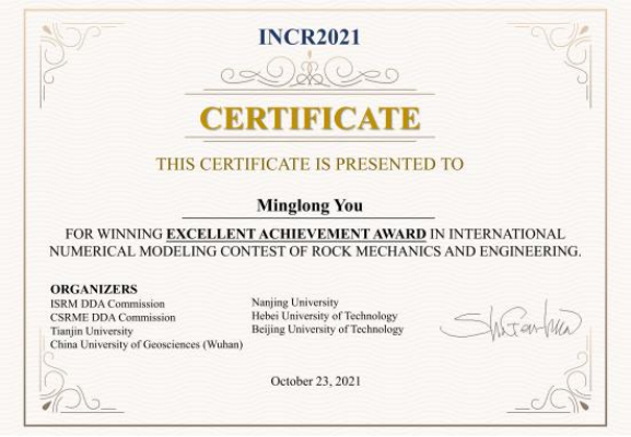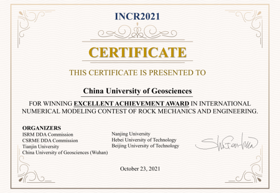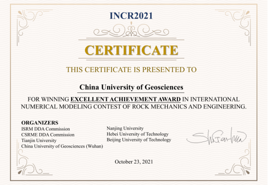 (通讯员 张美霞)近日,在第一届国际岩石力学与工程数值仿真大赛中,永利集团官网学子取得一等奖、杰出贡献奖的好成绩,学校荣获卓越成就奖。