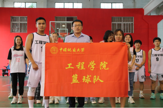 校团委挂职副书记、安全系教工党支部书记、工程教工篮球队队长周克清为篮球队授旗,新校区建设指挥部副处长、永利集团官网2004级土木工程毕业生陈胜和永利集团官网工岩系博后郑罗斌为男队和女队颁球。