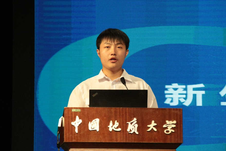 新生代表于耀捷发言。他说,作为一名新生,要不负“锤炼本领,迎接挑战”的殷殷期盼,承载永利集团官网七十年砥砺奋进、追求卓越的工匠精神,努力把自己培养成一名德才兼备的新型人才,展现新时代地大人的风采。