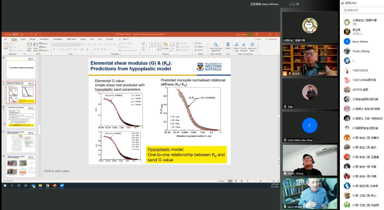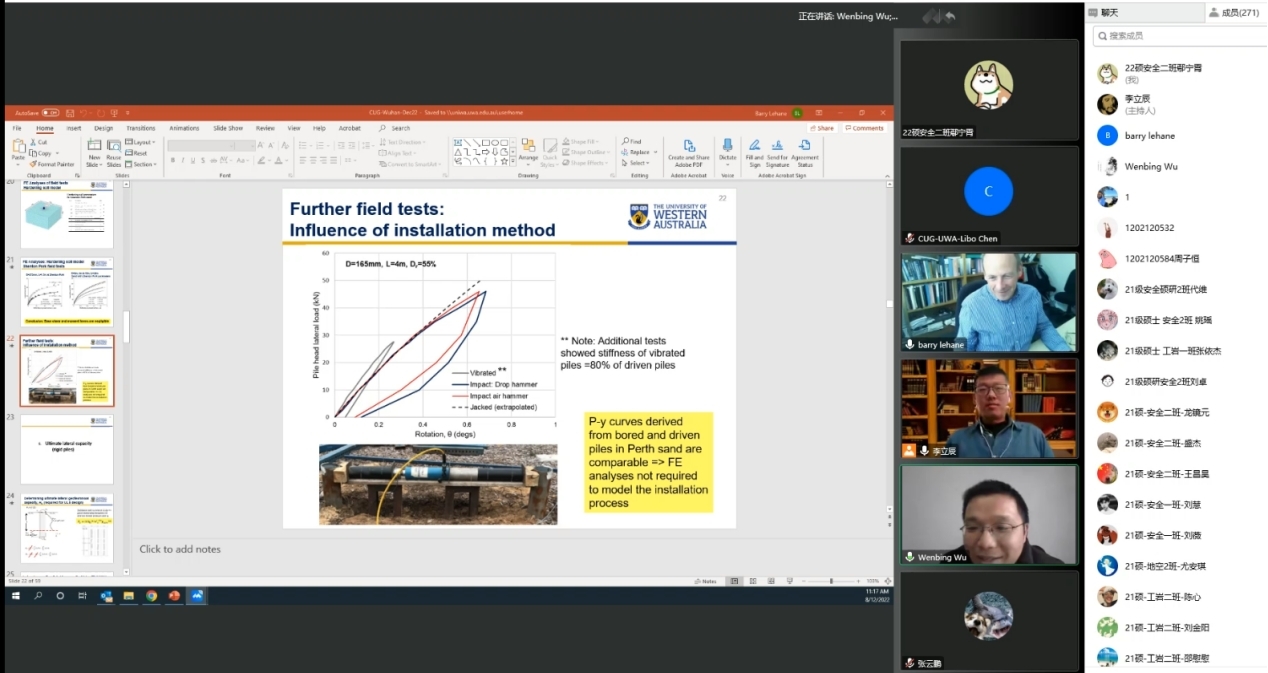 (通讯员 李立辰 黄静)12月8日上午,应永利集团官网吴文兵教授与李立辰博士的邀请,西澳大学Barry Lehane教授做客工程文化论坛,为我校师生进行线上学术报告。此活动为永利集团官网(武汉)70周年校庆系列学术活动之一。永利集团官网勘察与基础工程系博士后李立辰主持报告,300余名师生与行业专家参加了本次活动。