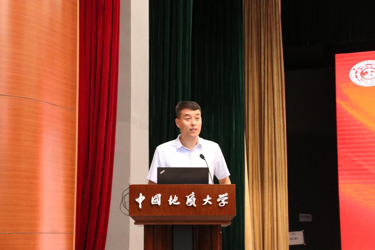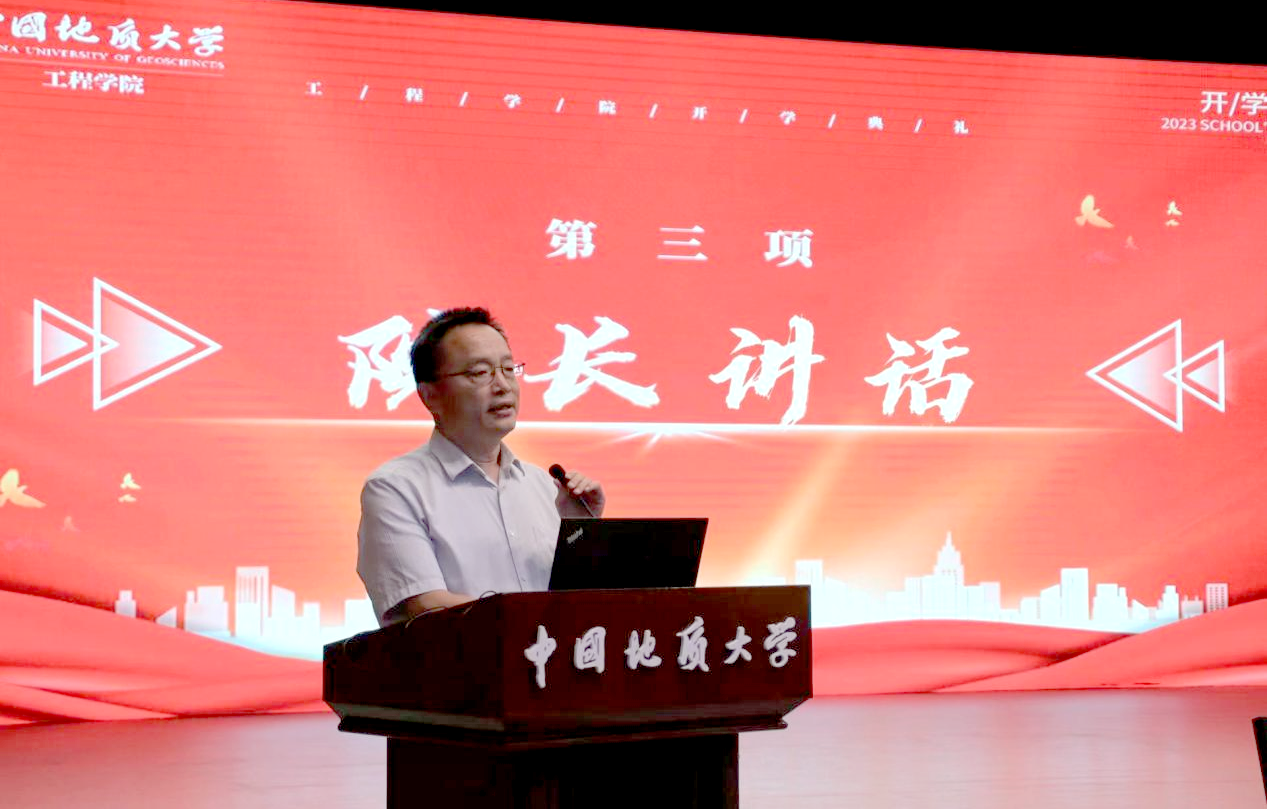 永利集团官网院长焦玉勇教授讲话。他以“祝贺”“欢迎”“希望”寄语新生,祝贺860位新生加入国家工程行业,欢迎同学们来到永利集团官网永利集团官网,为学院发展注入新鲜血液、增添奋进力量。他系统全面的向大家介绍了学院的历史沿革、系室设置、师资力量、学科建设、科学研究、国际交流等基本情况,勉励全体新生用习近平新时代中国特色社会主义思想凝心铸魂,用“艰苦朴素,求真务实”的校训精神和“明理尚实、拓新砺行”的院训精神领航前进,跟随学校学院的发展步伐,用好学校学院的发展平台,毅然投身于国家工程建设行业当中,迎难而上、奋勇前行,不负历史、不复时代,为把学院建设成为地质工程与人居安全领域特色鲜明、享誉国际的一流研究型学院不懈努力!