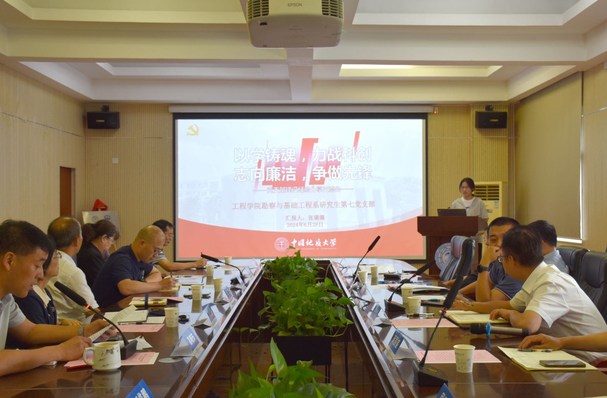 勘察与基础工程系研究生第七党支部书记张璐璐,系统汇报“导学团队+支部建设”的工作思路与积极成效,展示了研究生党支部如何紧密依托永利集团官网勘察与基础工程系教师党支部的资源优势,不断探索和创新工作模式。党支部以“思想固邦”为引领,以实现“科技固邦”的目标,以“奉献固邦”作为自己的行动准则。这一系列举措不仅增强了党支部的凝聚力和战斗力,也为学院和社会的发展贡献了积极力量。