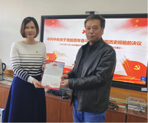 最后,陈飞同志为支部11月份过政治生日的同志发放了纪念卡,李红丽、高晓东、陈婵三位同志讲述了自己加入共产党的心路历程、成长经历和工作感悟。