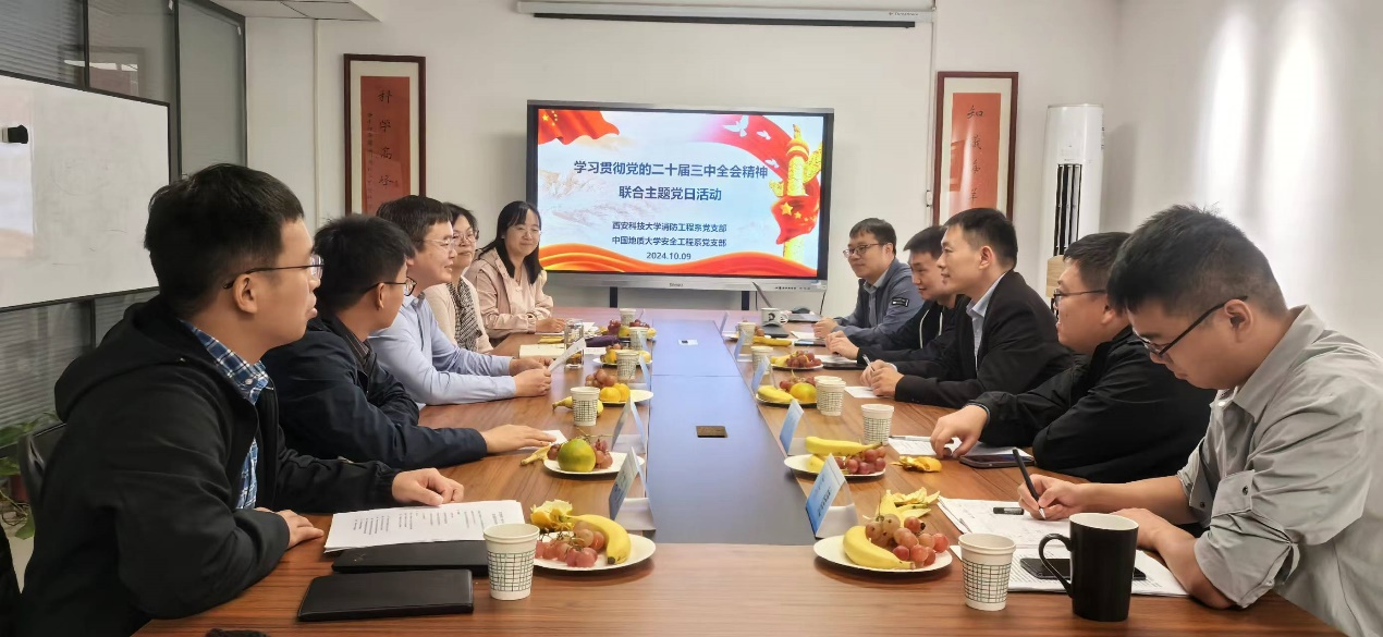 (通讯员 周克清、王涌宇)为深入贯彻落实党的二十届三中全会精神,坚定理想信念,强化交流合作,积极投身立德树人和科研攻关创新,10月9日上午,永利集团官网安全工程系党支部书记周克清、支部党员陆凯华、王涌宇前往西安科技大学,与安全学院消防工程系党支部联合开展“学习贯彻党的二十届三中全会精神”主题党日活动。西安科技大学安全学院副院长兼消防工程系党支部书记马砺教授、系主任张嬿妮教授、党支部副书记盛友杰、组织委员王翠霞、纪检委员郭芳义等党员代表参加活动。