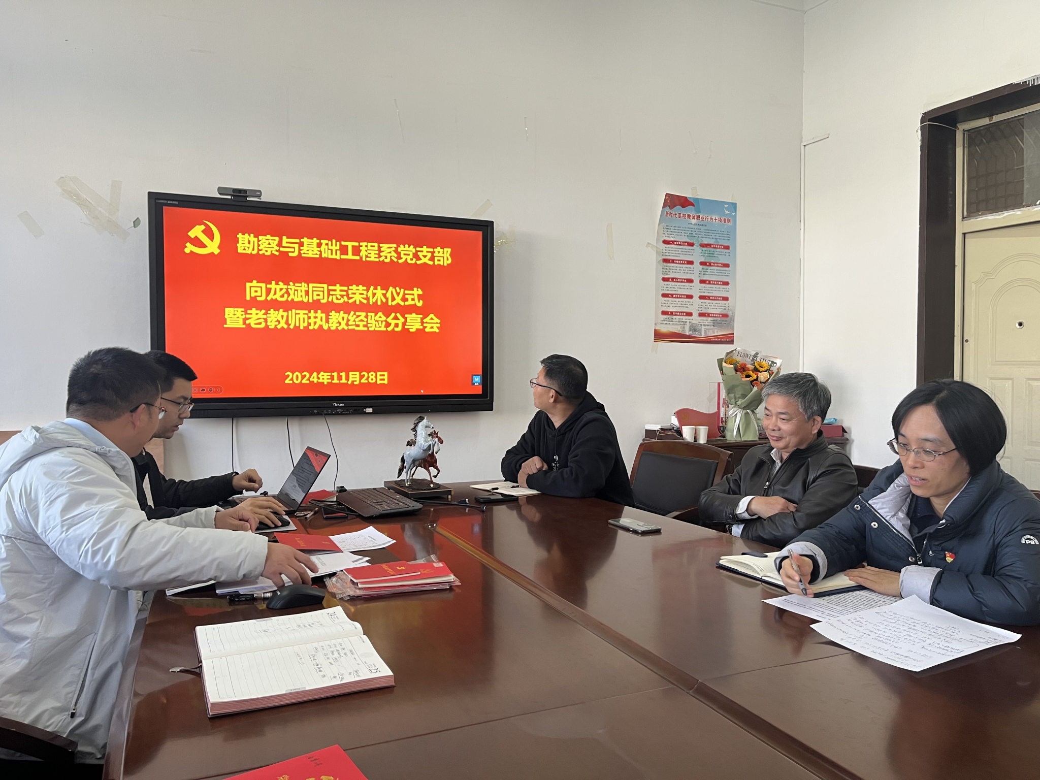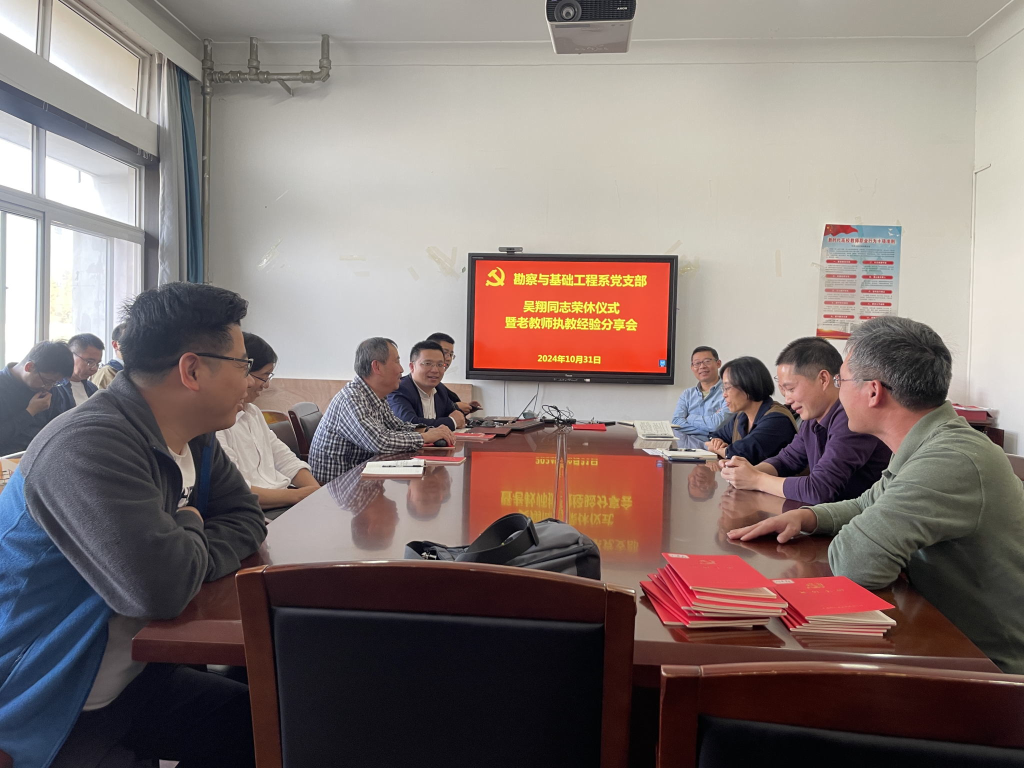 (通讯员 吴文兵)近日,永利集团官网勘察与基础工程系党支部先后为吴翔老师和向龙斌老师隆重举办“荣休仪式暨老教师执教经验分享会”。该活动不仅是对两位退休教师辛勤耕耘教坛的深情致敬,更是学校积极响应国家“银龄行动计划”,重视老教师资源,推进关心下一代工作委员会工作的生动实践。永利集团官网党委书记李红丽出席活动,仪式由勘基系党支部书记吴文兵主持。