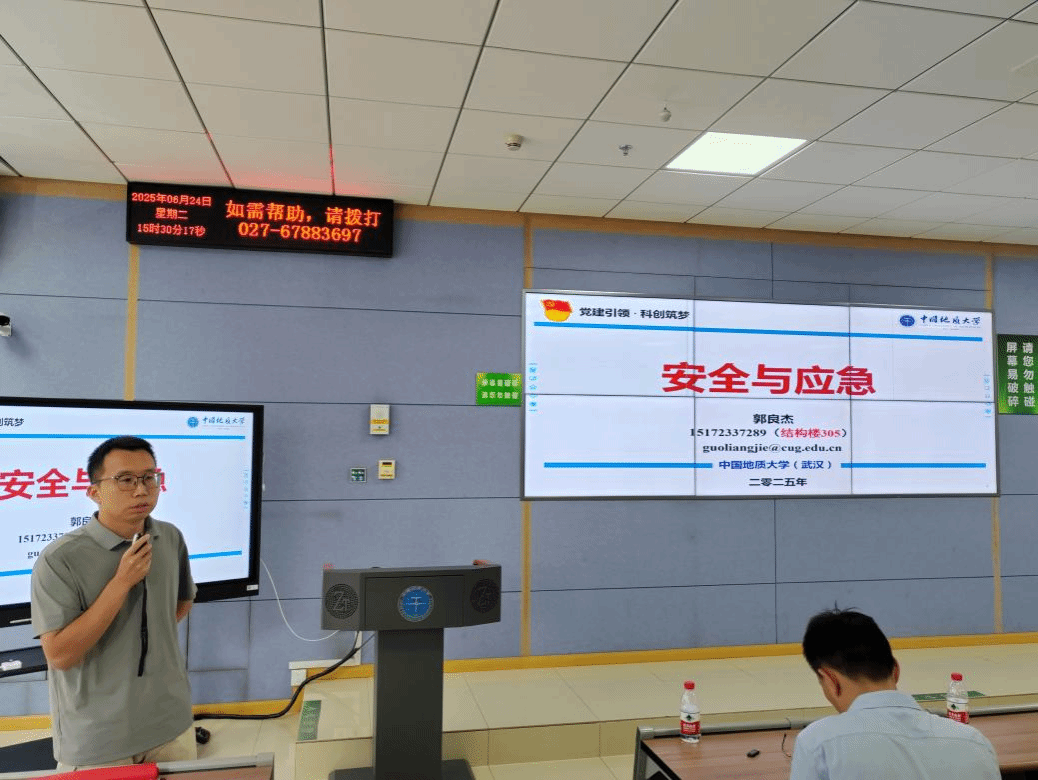 随后,郭良杰副研究员以“生动详实的典型案例”以及“系统详细的专业知识”,层层深入地解析“安全工程”与“应急技术与管理”的专业内涵与外延。既夯实了同学们对专业基础的理解,也为大家在未来专业分流时的方向选择提供了清晰指引,让2024级本科生对专业前景有了更具象、更深刻的认知。此外,他也从发展历程、社团特色、资源支持以及实践育人等方面介绍了安全工程系学术科技类社团——永利集团官网(武汉)“地心守护”社团。他提到,社团作为科创与实践的“孵化站”,鼓励学生通过社团活动积累实践经验、锤炼过硬本领,将专业知识转化为解决实际问题的能力。