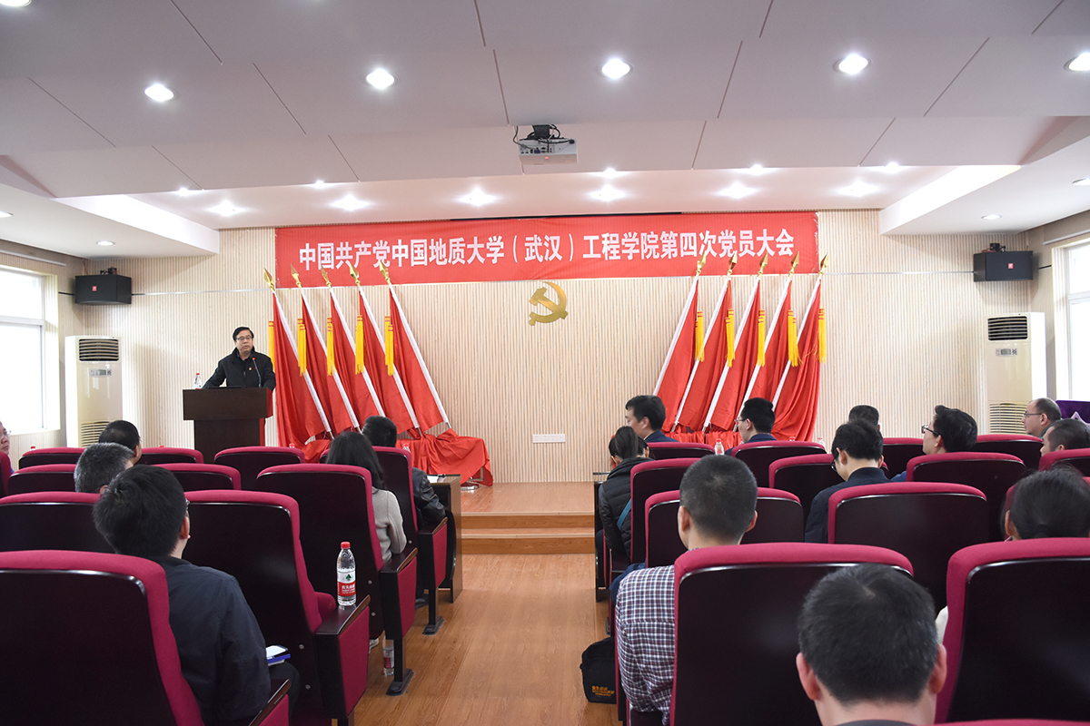 (编辑:杨冠青)春暖花开,万物勃发。2019年3月21日下午,工程楼418会议厅气氛庄重热烈,主席台正中的党徽在鲜艳的红旗映衬下熠熠生辉。中国共产党永利集团官网(武汉)永利集团官网第四次党员大会在这里隆重召开,出席大会的有学校党委副书记唐辉明同志,组织部副部长冷再心同志,学院全体教职工党员、部分特邀民主党派和学生党员代表等120余人参加了大会。大会由学院院长焦玉勇同志主持。
